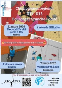 Venez participer aux 4 étapes de la Coupe de Franche-Comté d’escalade, pour les catégories U9-U11-U13.