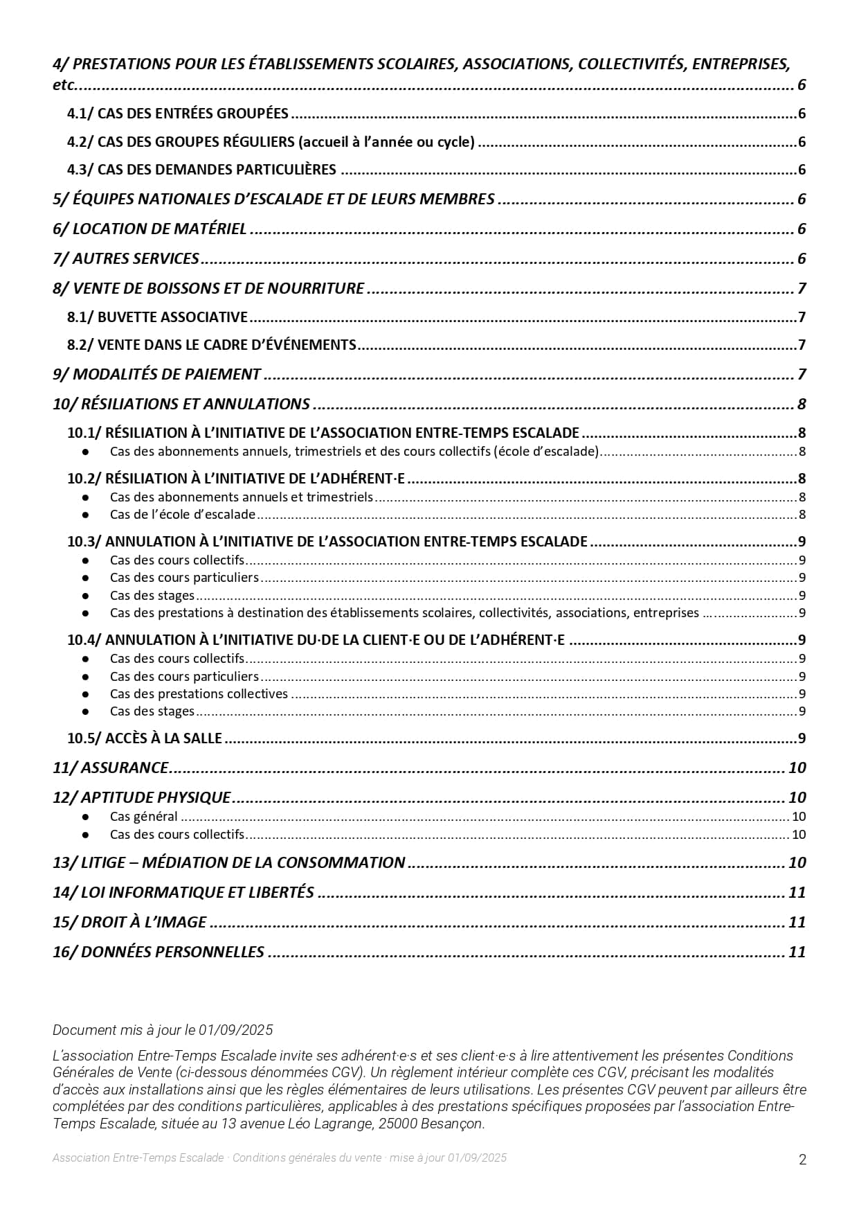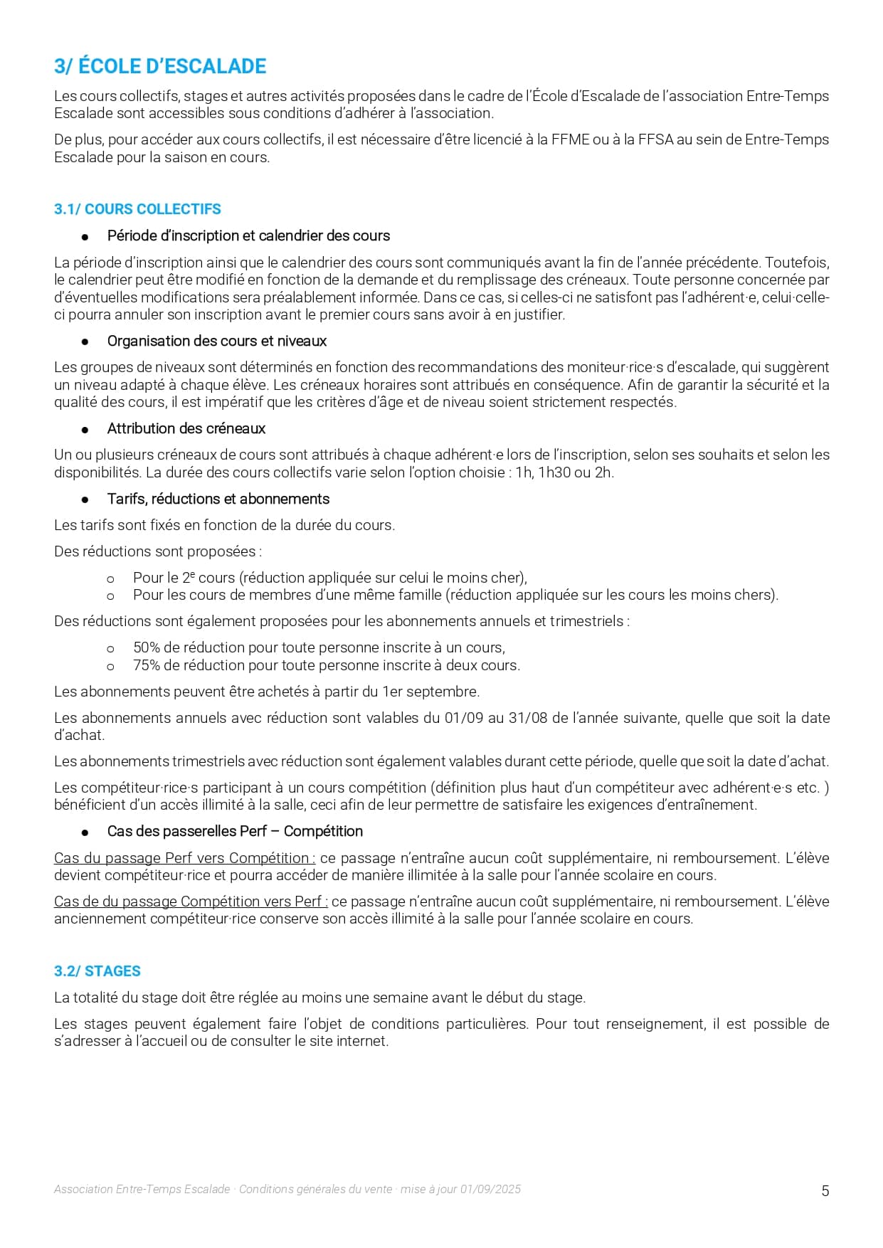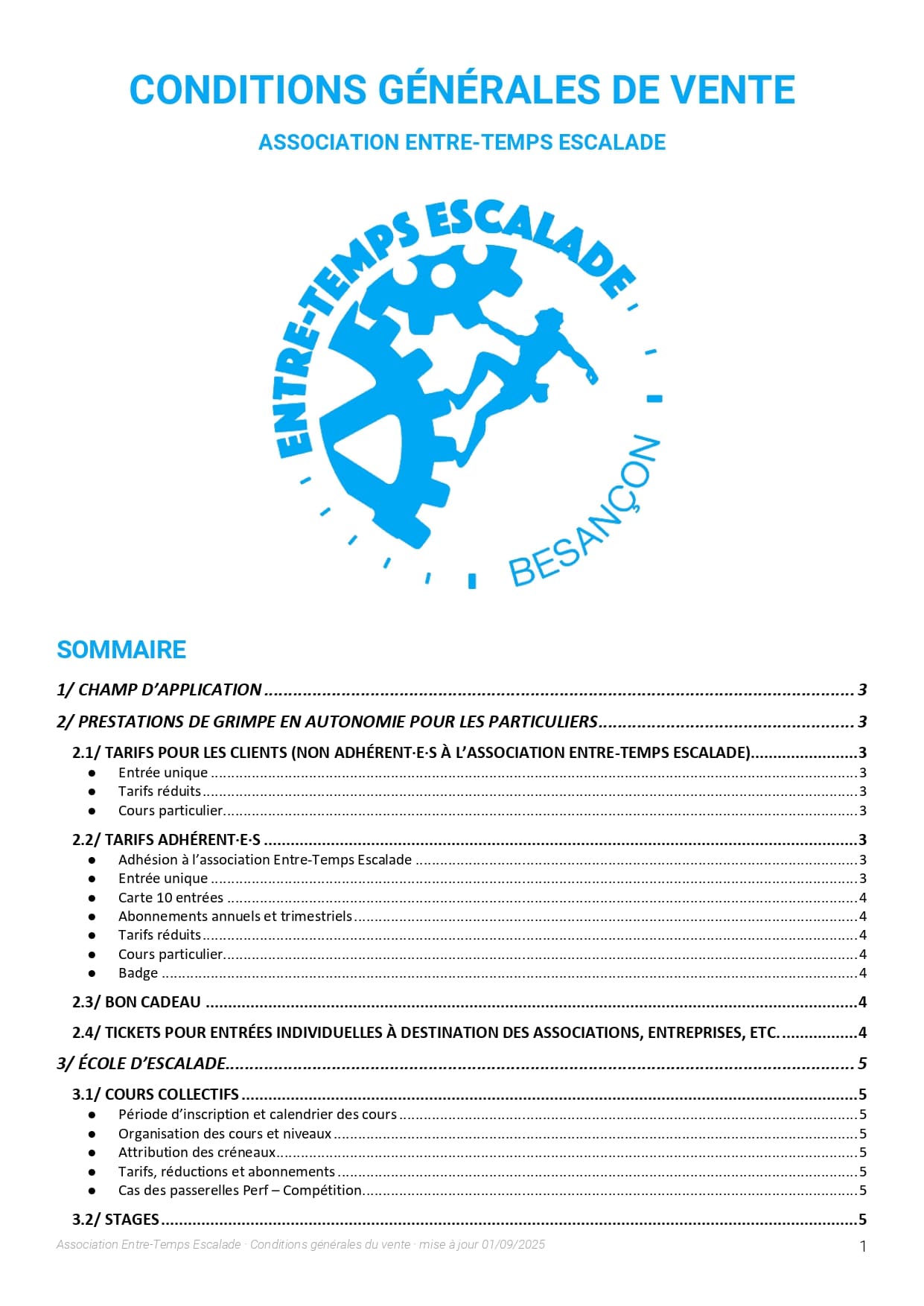 L’association Entre-Temps Escalade organise des séances de cours d’initiation, de loisir, de perfectionnement et de compétition. Les accompagnateurs des mineurs s’engagent :