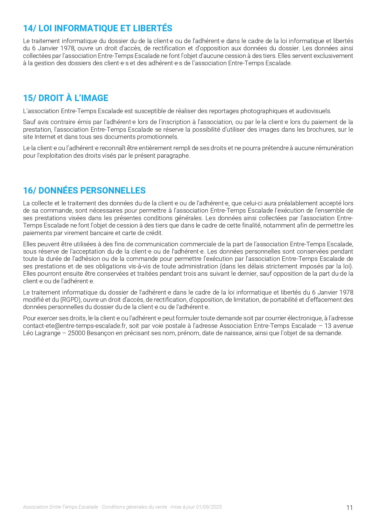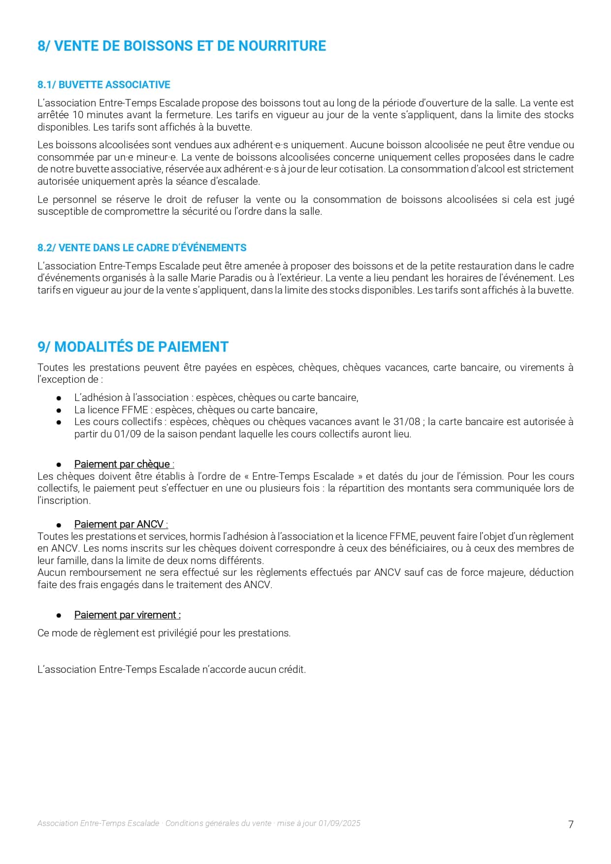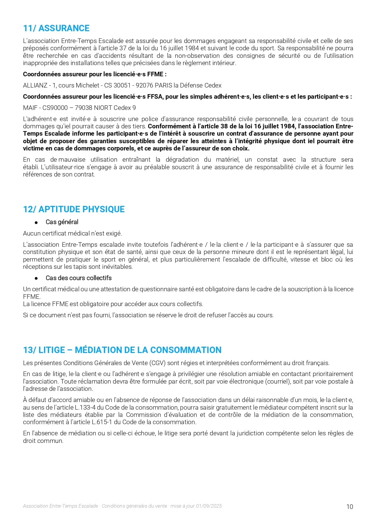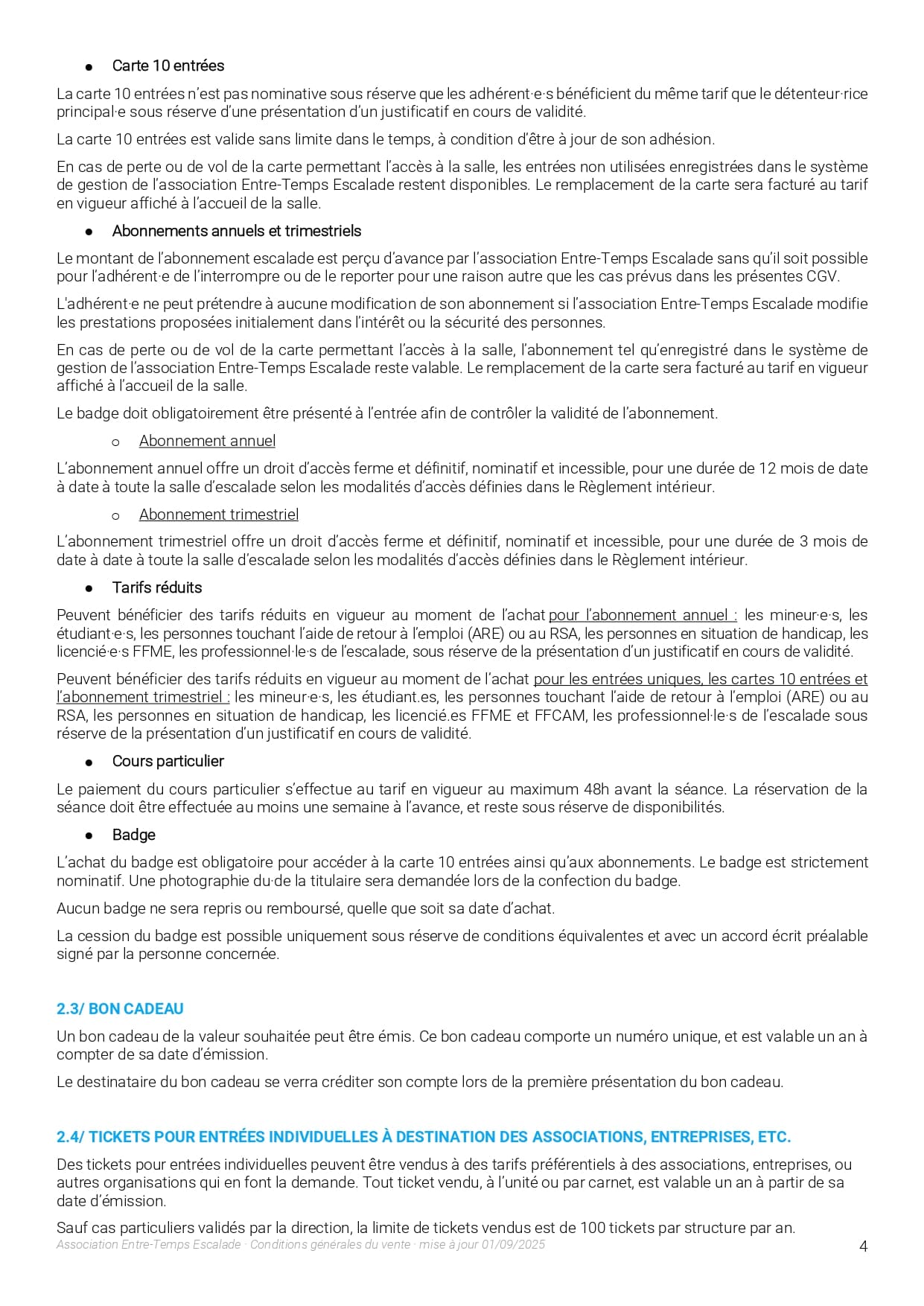 L’association Entre-Temps Escalade organise des séances de cours d’initiation, de loisir, de perfectionnement et de compétition. Les accompagnateurs des mineurs s’engagent :